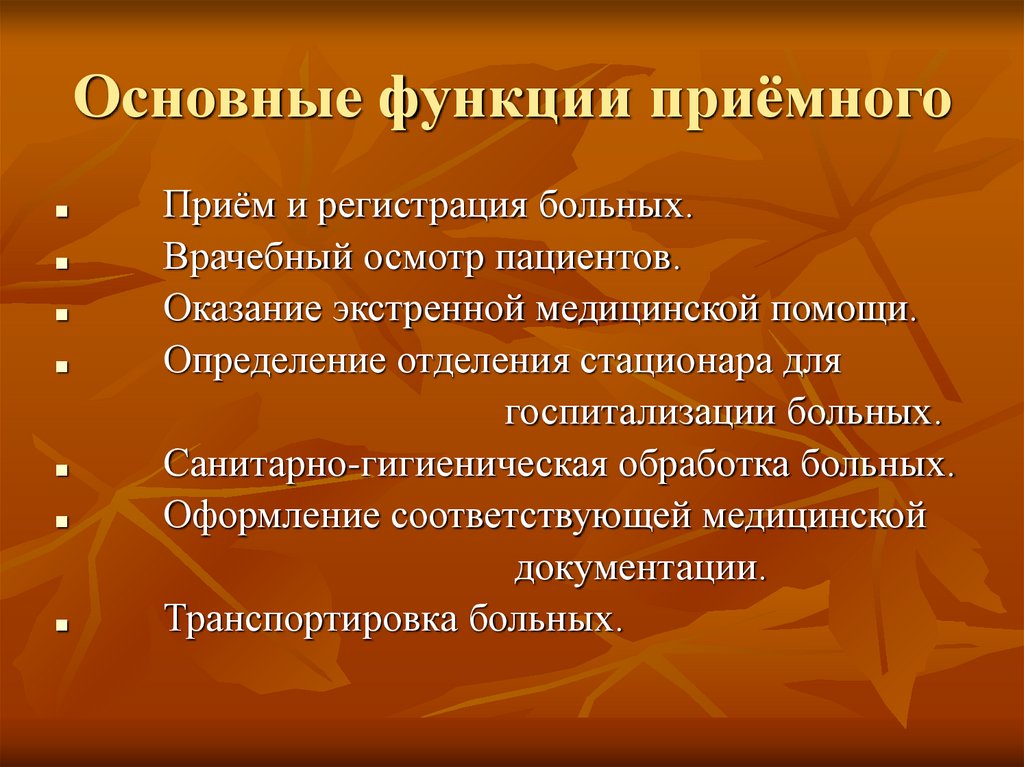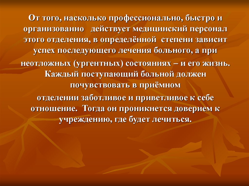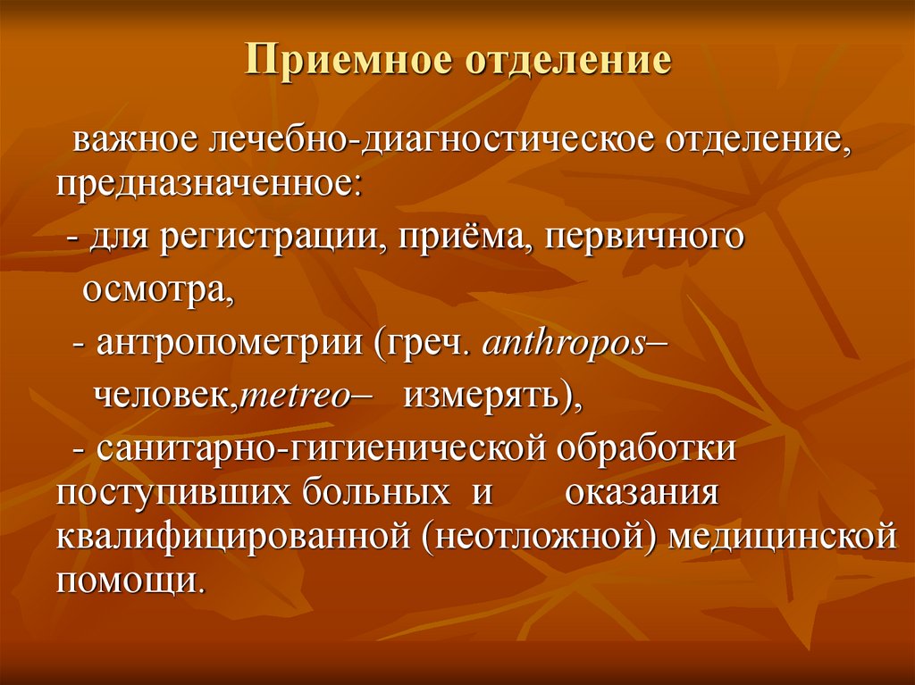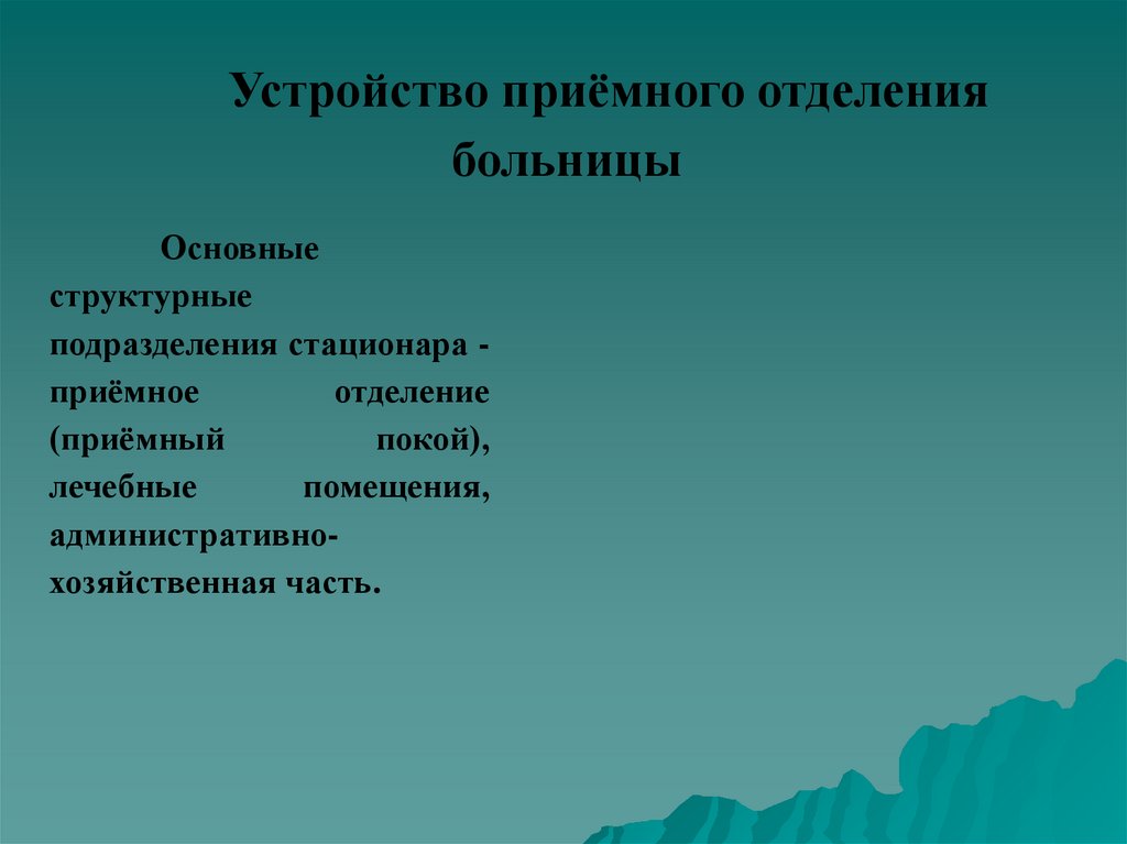 Приемное отделениеважное лечебно-диагностическое отделение,