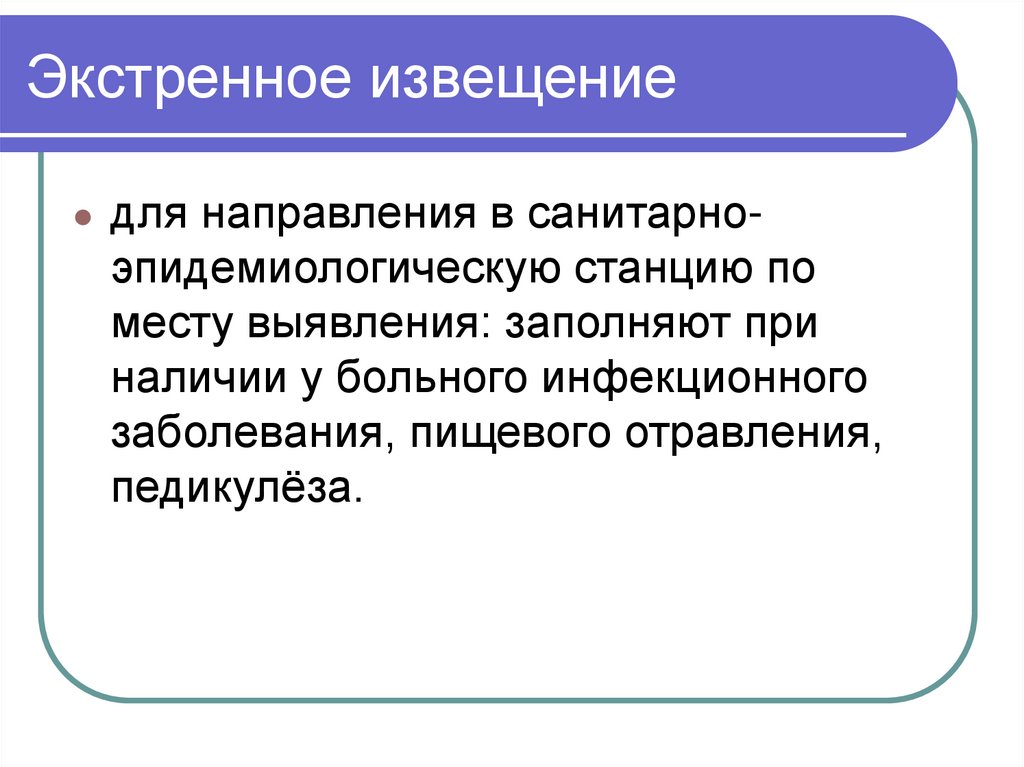 Экстренное извещение санитарно-эпидемиологической службы (по