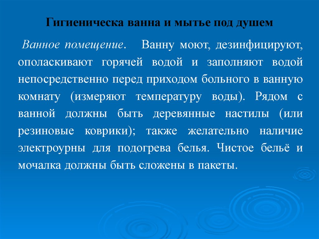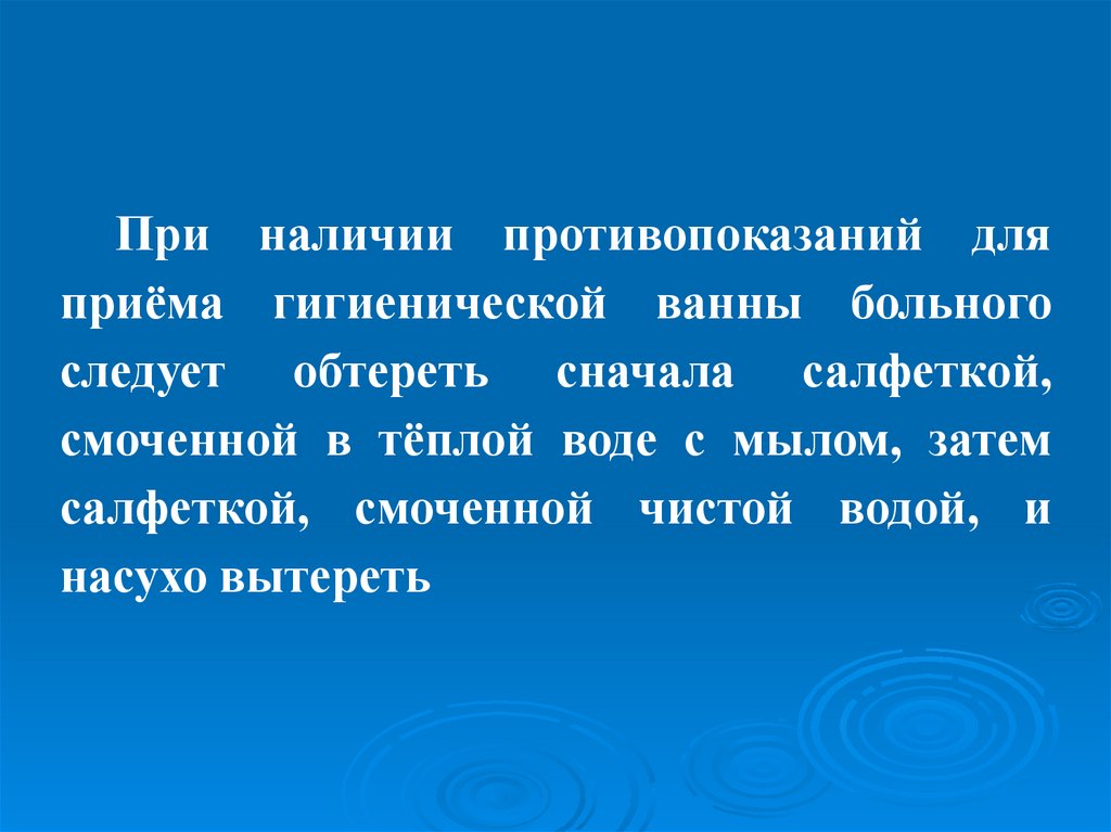 При наличии противопоказаний дляприёма гигиенической ванны больного