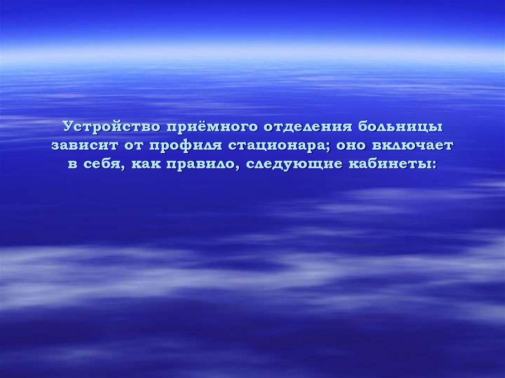 Устройство приёмного отделения больницызависит от профиля стационара; оно включает