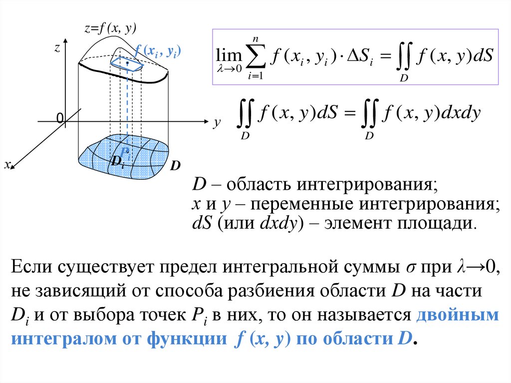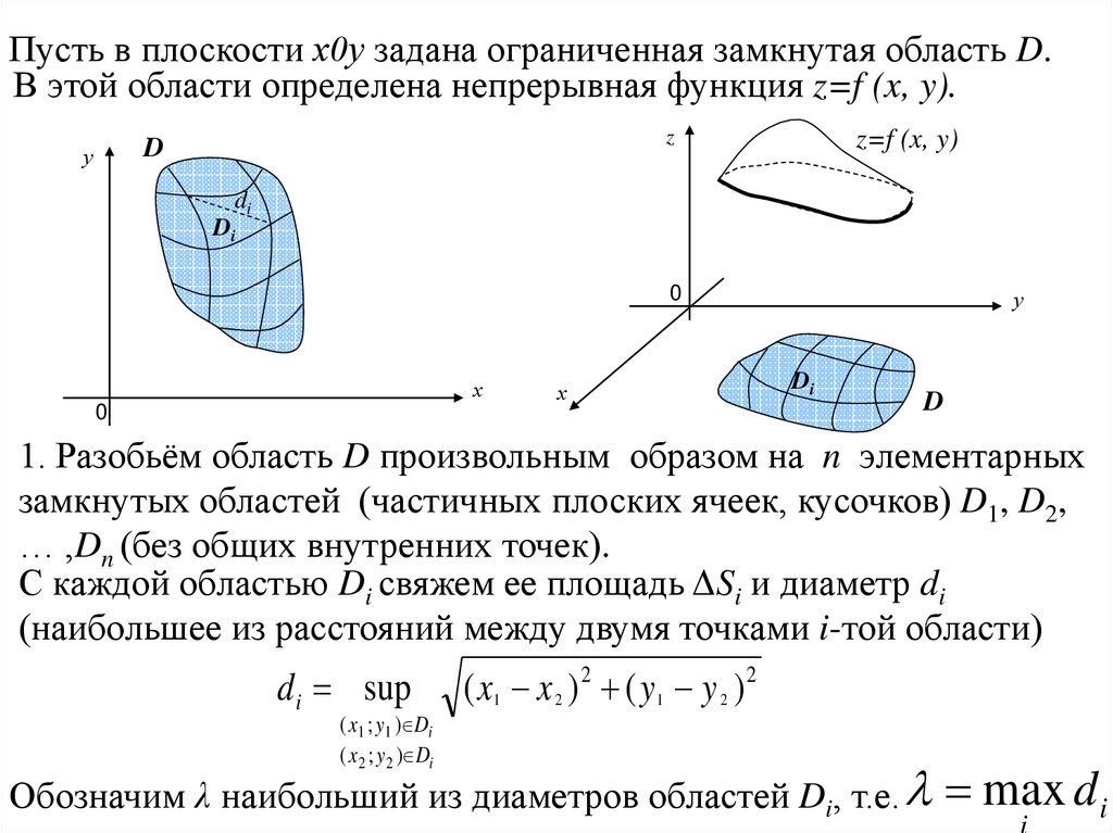 Пусть в плоскости х0у задана ограниченная замкнутая область D.В этой области определена непрерывная функция z=f (x, y).