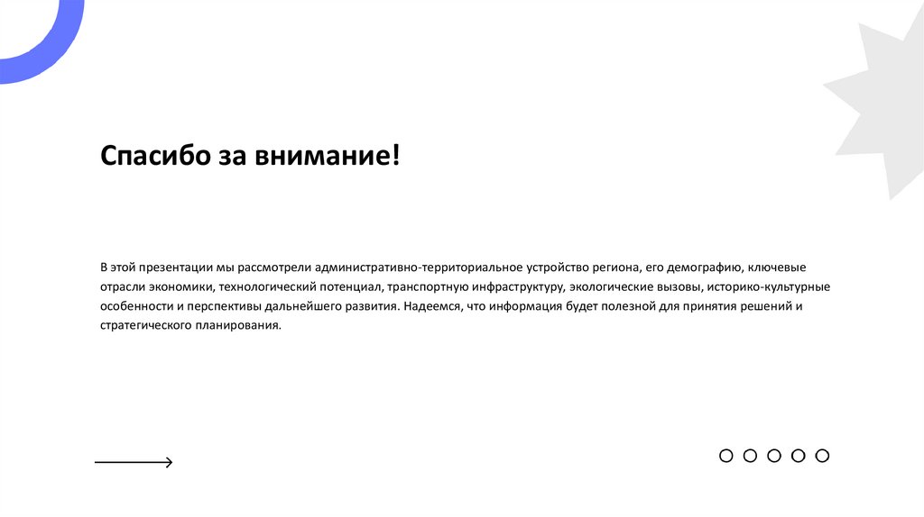 Спасибо за внимание!В этой презентации мы рассмотрели административно-территориальное устройство региона, его демографию, ключевые