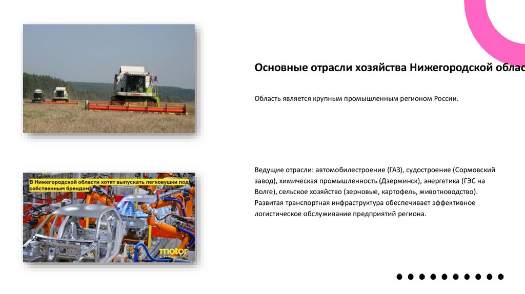 Основные отрасли хозяйства Нижегородской областОбласть является крупным промышленным регионом России.