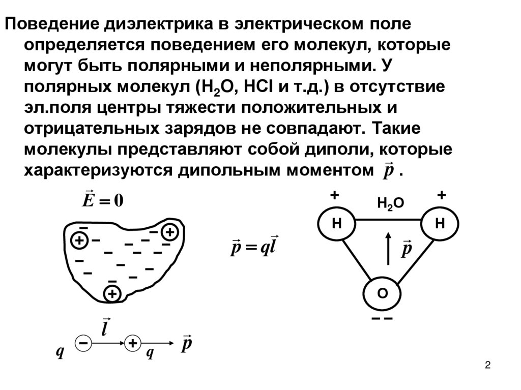 Поведение диэлектрика в электрическом полеопределяется поведением его молекул, которые