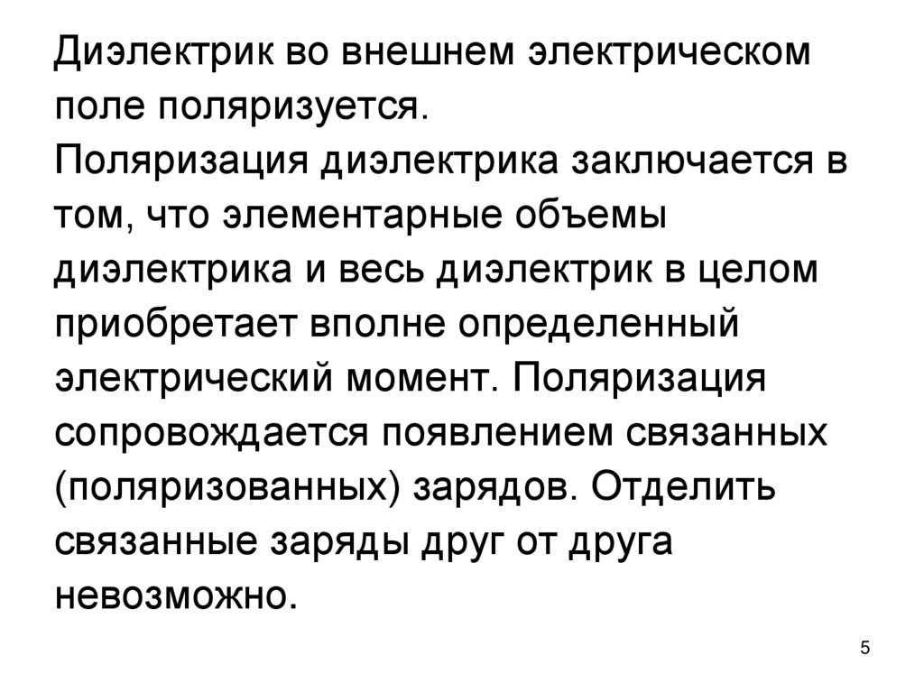 Диэлектрик во внешнем электрическомполе поляризуется.