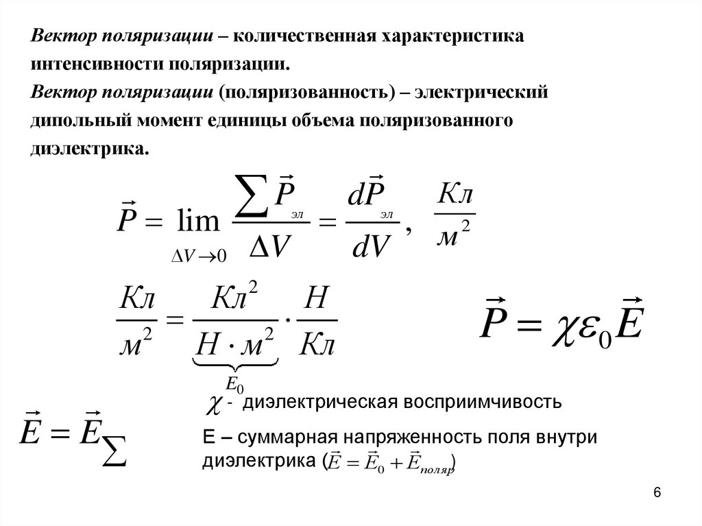 Вектор поляризации – количественная характеристикаинтенсивности поляризации.