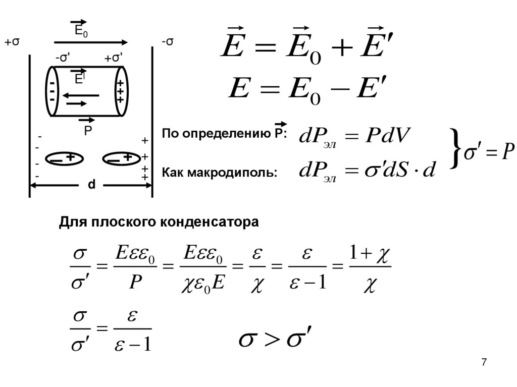 диэлектрика (Е Е0 Еполяр)