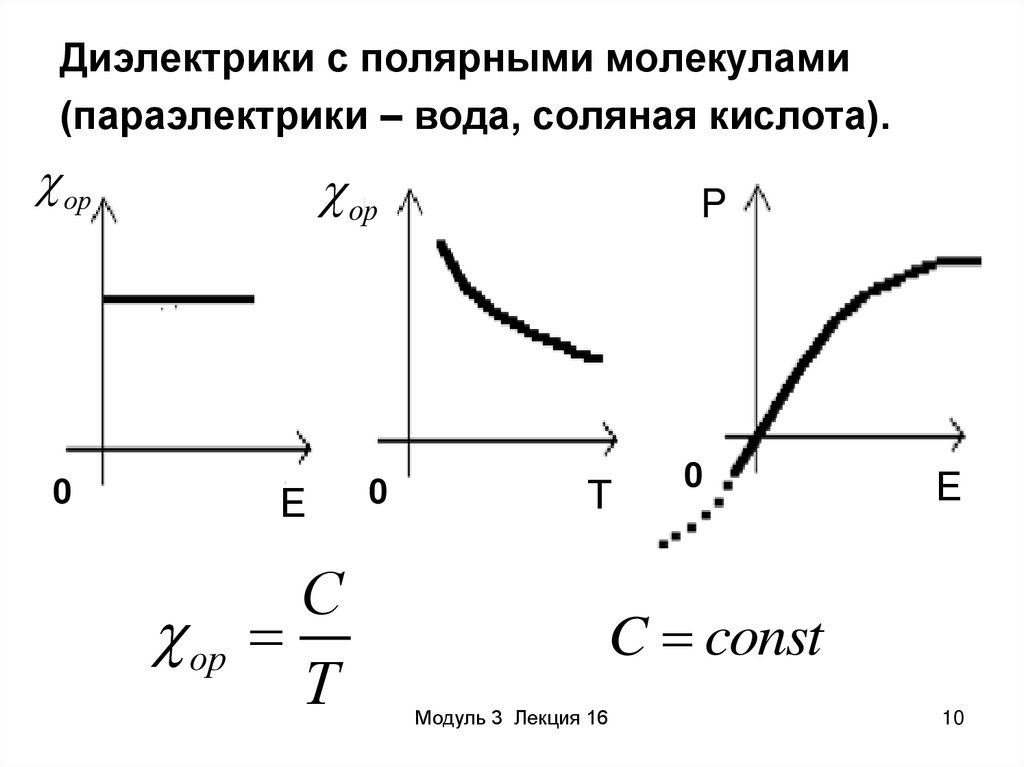 Диэлектрики с полярными молекулами(параэлектрики – вода, соляная кислота).