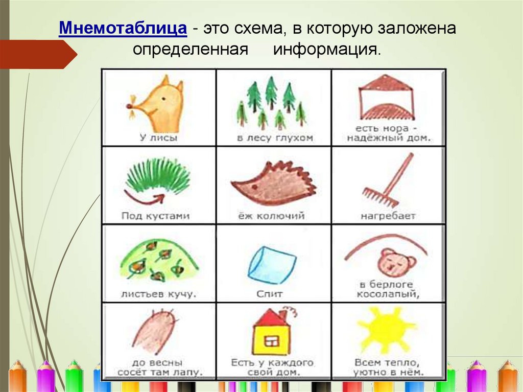Мнемотаблица - это схема, в которую заложенаопределенная информация.