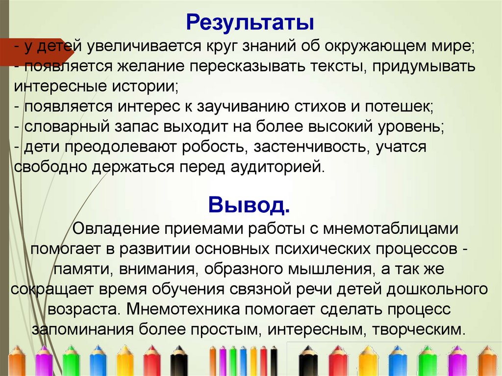 Результаты- у детей увеличивается круг знаний об окружающем мире;