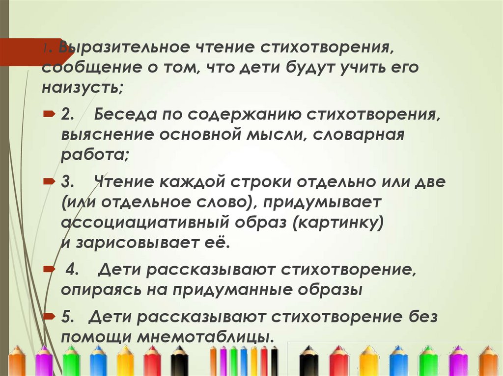 1. Выразительное чтение стихотворения,сообщение о том, что дети будут учить его