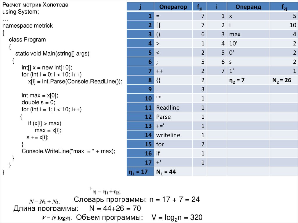 Расчет метрик Холстедаusing System;