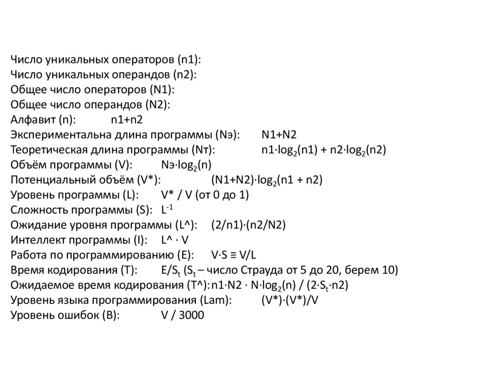 2. Метрики сложности по Холстеду –