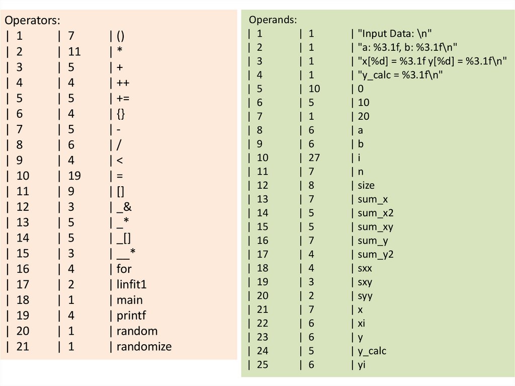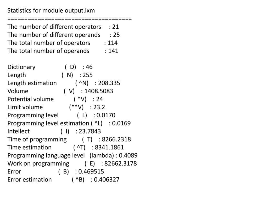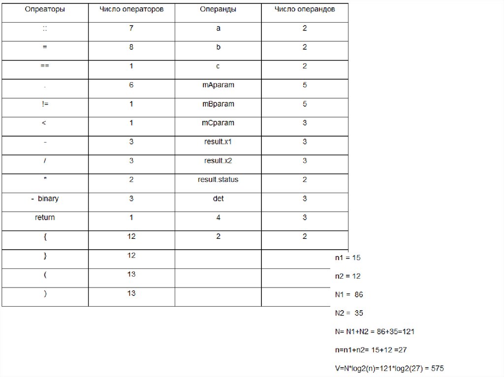 Число уникальных операторов (n1):Число уникальных операндов (n2):