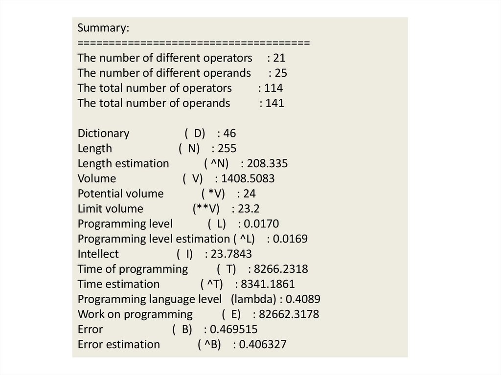 3. Сводка метрик по Холстеду