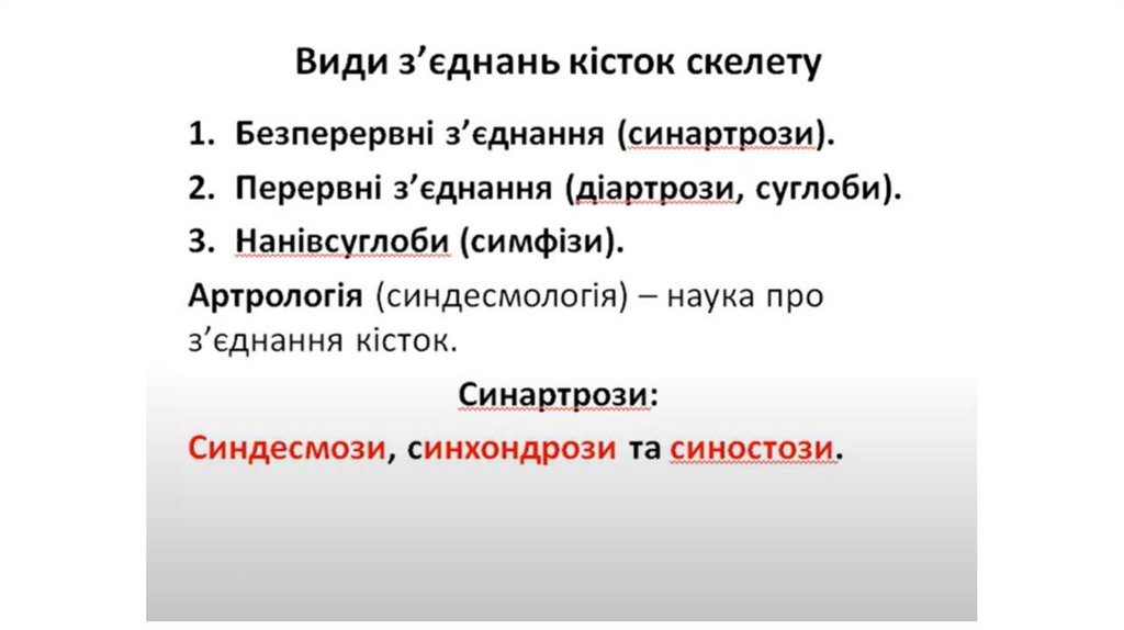 4. Неперервне з’єднання – таке, у якому між кістками, що з’єднуються, є прошарок сполучної тканини і відсутня щілина або порожнина