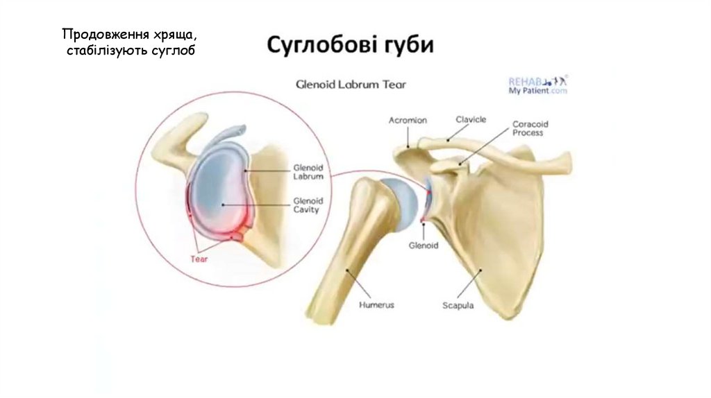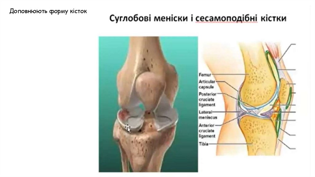 Доповнюють форму кісток24. Суглоб – рухоме з'єднання кісток скелета, розділених щілиною