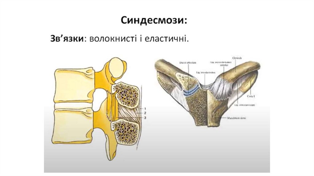 З'єднання кісток за допомогою зв'язок і мембран,колагенові волокна яких зростаються з окістям