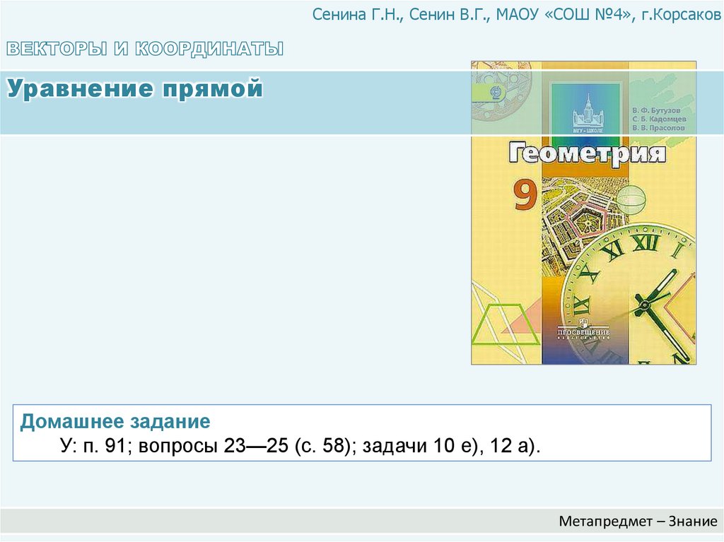 Сенина Г.Н., Сенин В.Г., МАОУ «СОШ №4», г.КорсаковУравнение прямой