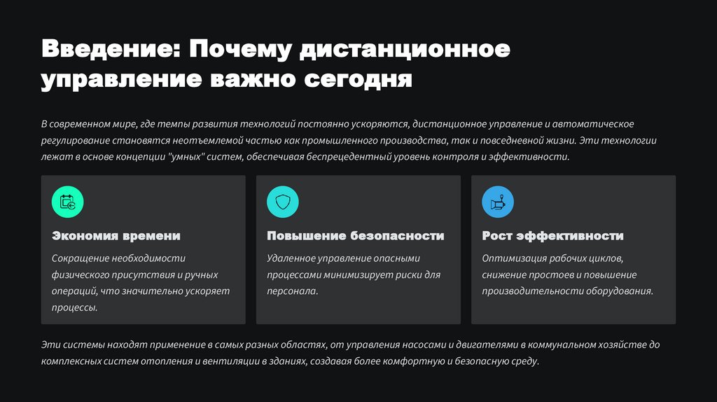 Дистанционное управление и автоматическое регулирование технических процессов перестали быть просто опциями; они становятся