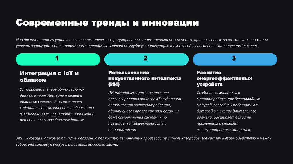 Современные тренды и инновацииМир дистанционного управления и автоматического регулирования стремительно развивается, привнося новые возможности и повышая