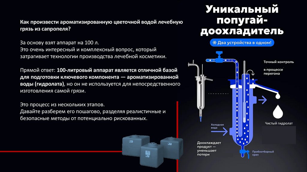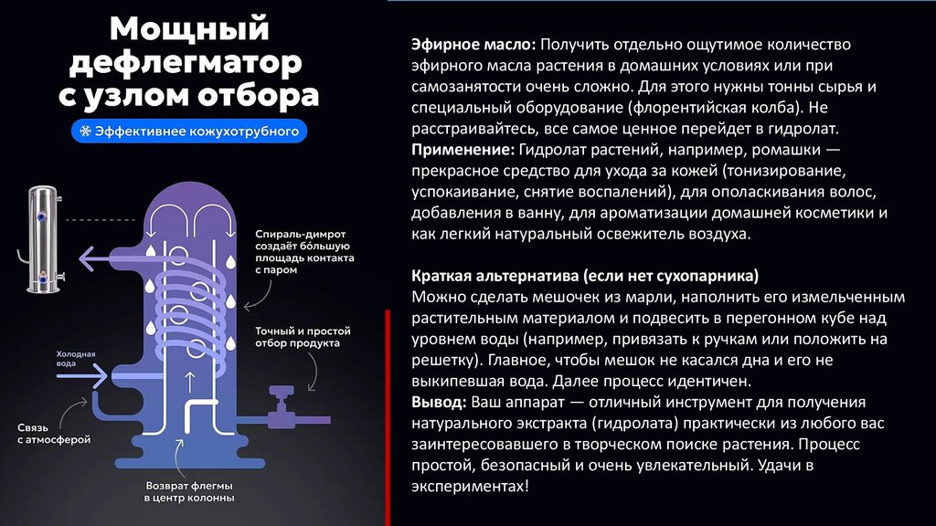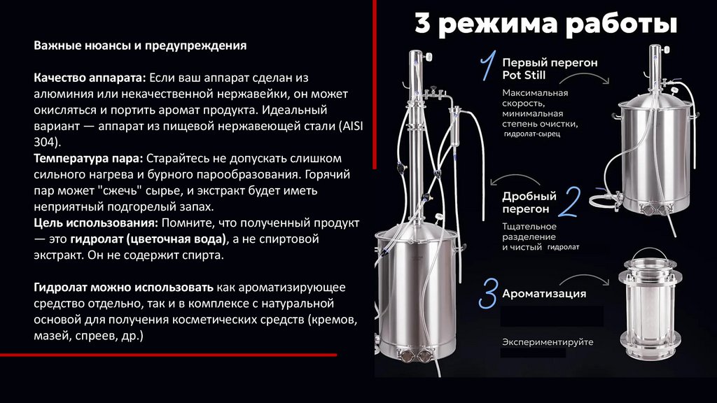 Назначение. Аппарат предназначен для получения натуральныхэкстрактов (гидролатов) из различных цветочных лепестков и