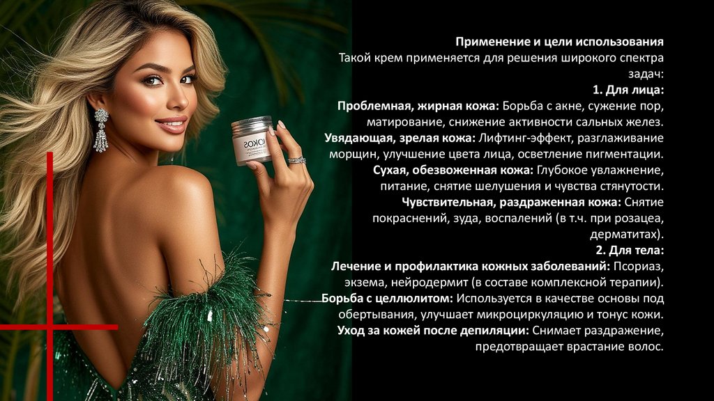 Применение и цели использованияТакой крем применяется для решения широкого спектра
