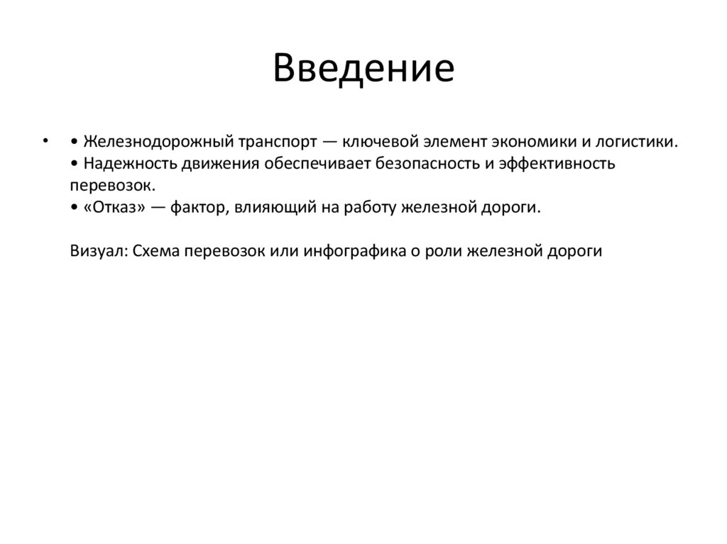 Введение• Железнодорожный транспорт — ключевой элемент экономики и логистики.