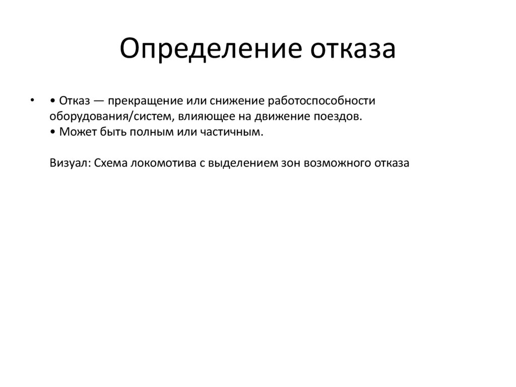 Определение отказа• Отказ — прекращение или снижение работоспособности