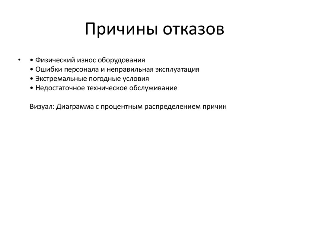 • Основные причины: износ оборудования, ошибки персонала, погодные