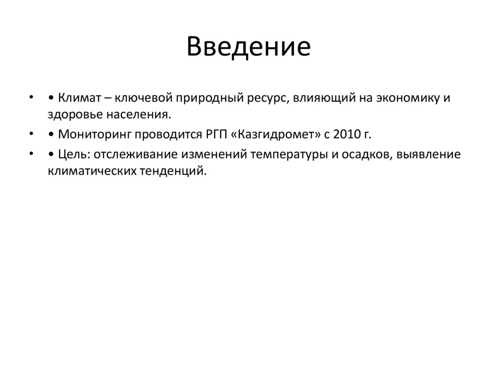 Введение• • Климат – ключевой природный ресурс, влияющий на экономику и