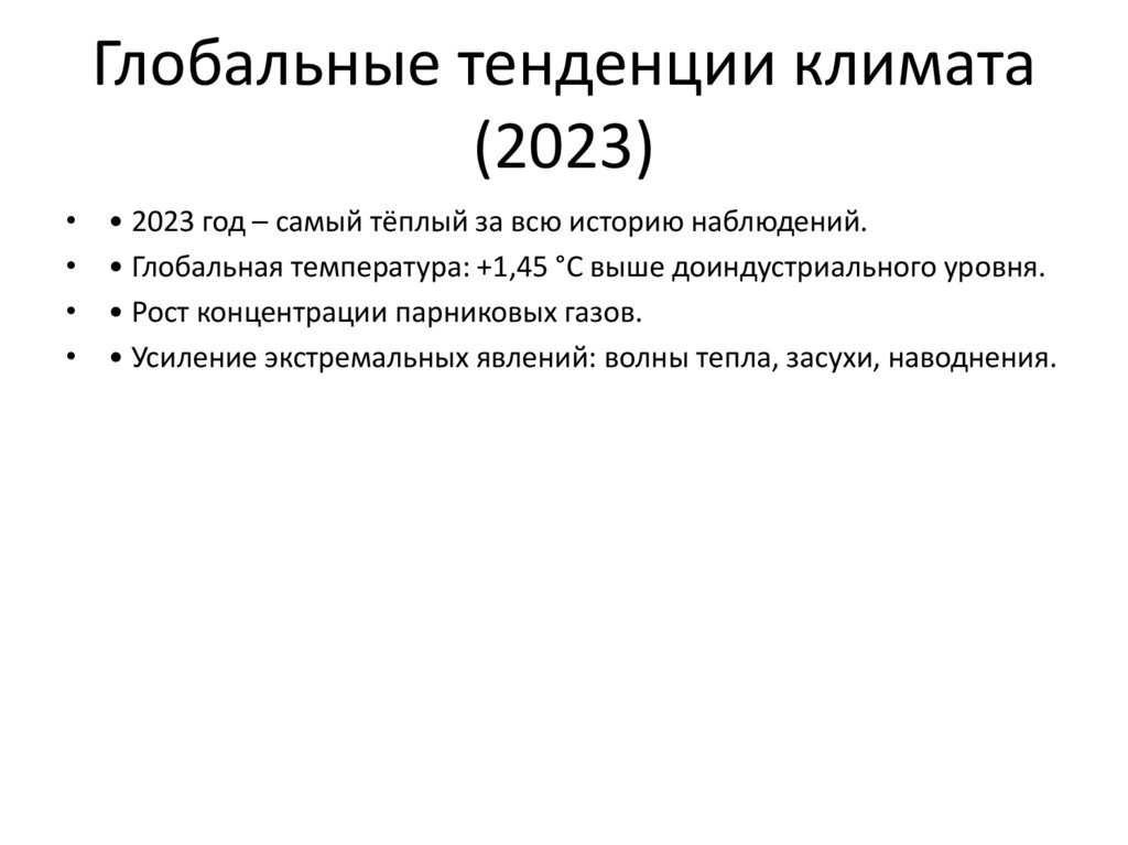 • 2023 год – самый тёплый за всю историю наблюдений.