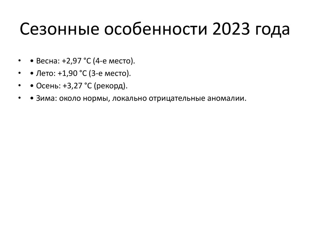 Сезонные особенности 2023 года• Весна: +2,97 °C (4-е место).