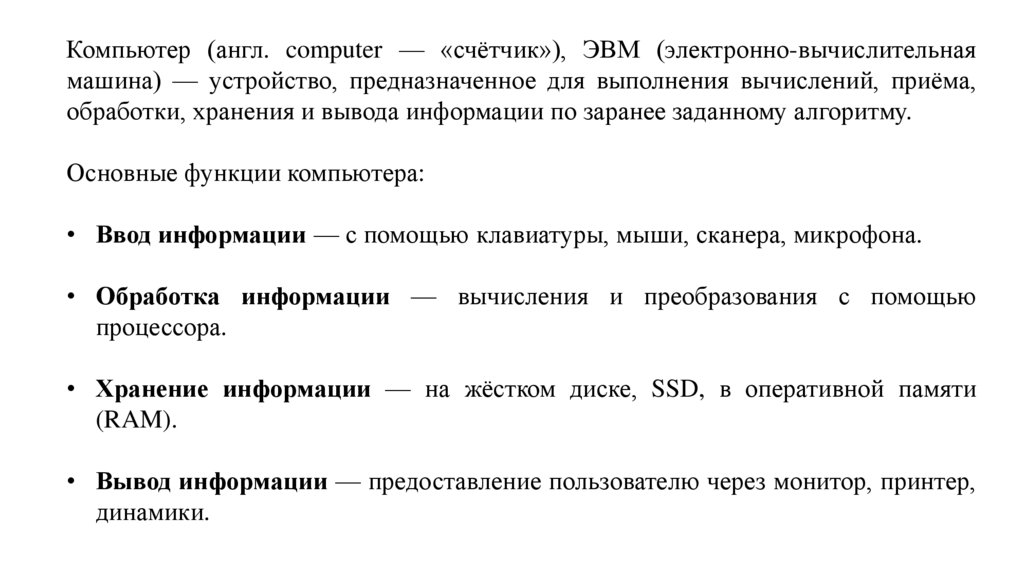 обработки, хранения и вывода информации по заранее заданному алгоритму.