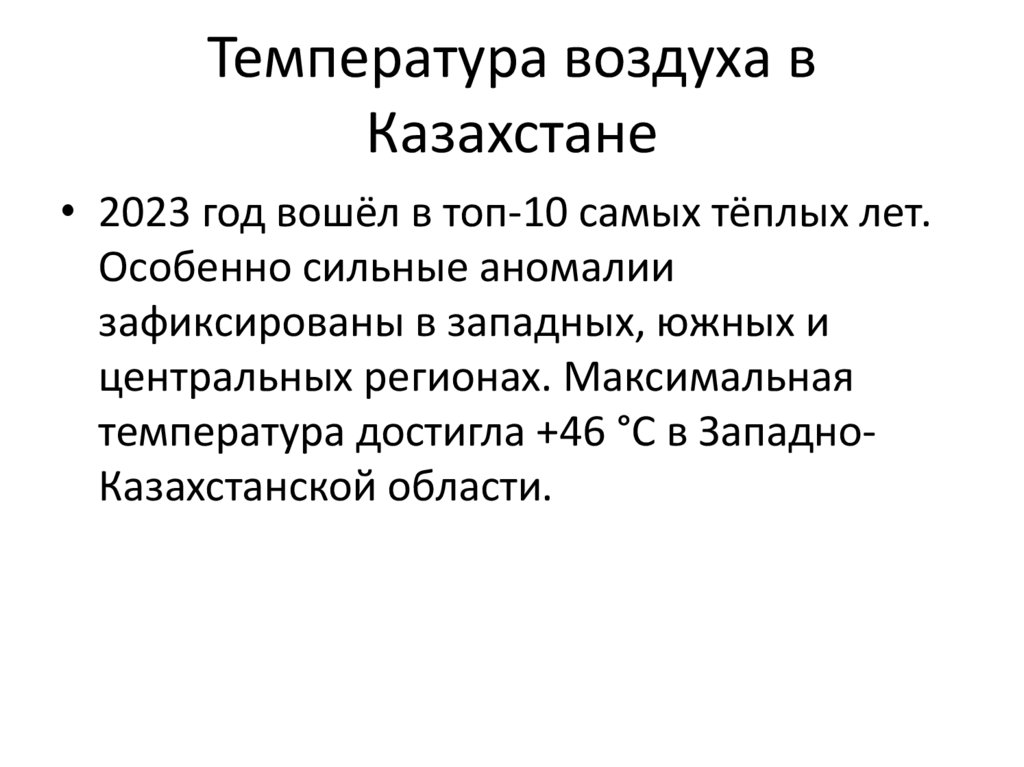 Климат Казахстана в 2023 году• 2023 год стал самым тёплым годом в