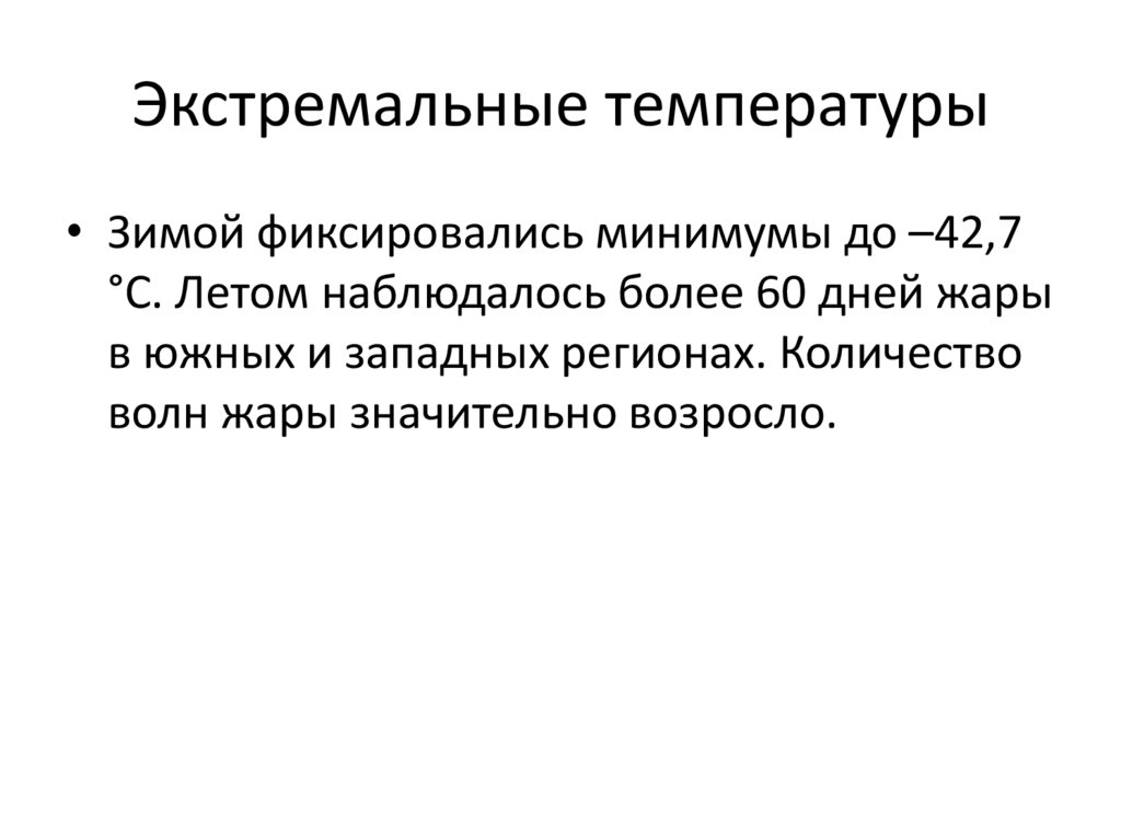 Экстремальные температуры• Зимой фиксировались минимумы до –42,7
