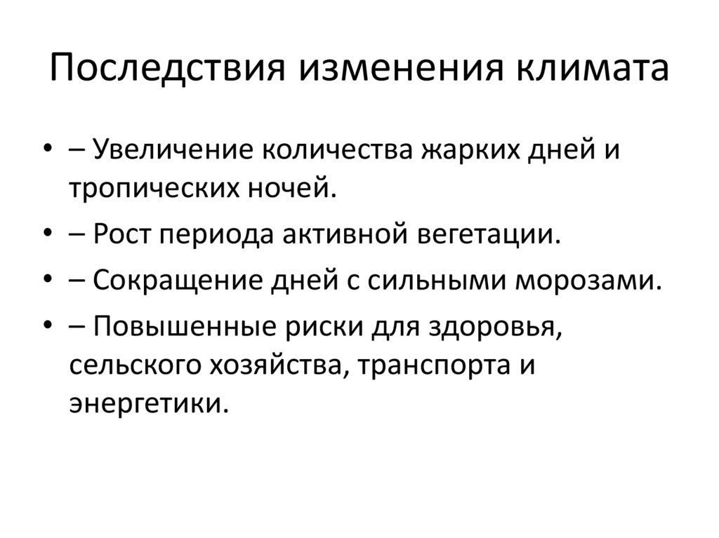 Последствия изменения климата• – Увеличение количества жарких дней и