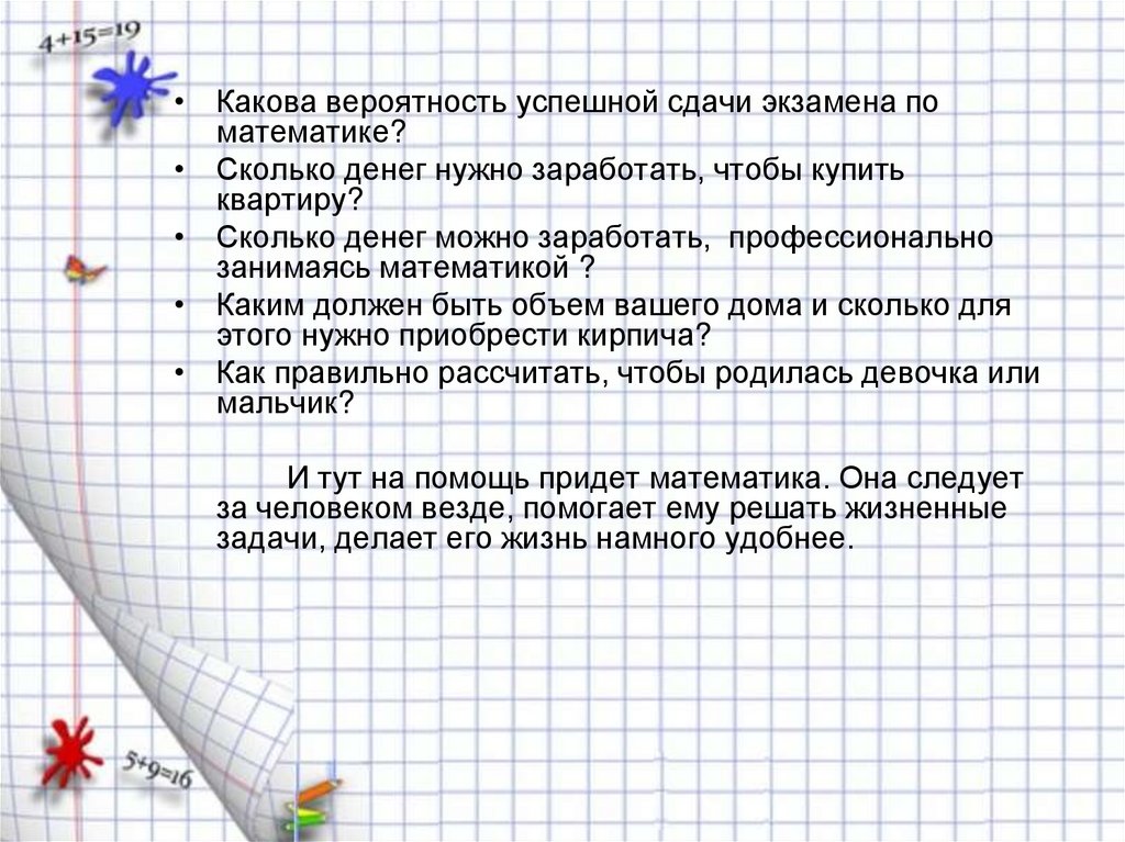 • Какова вероятность успешной сдачи экзамена поматематике?