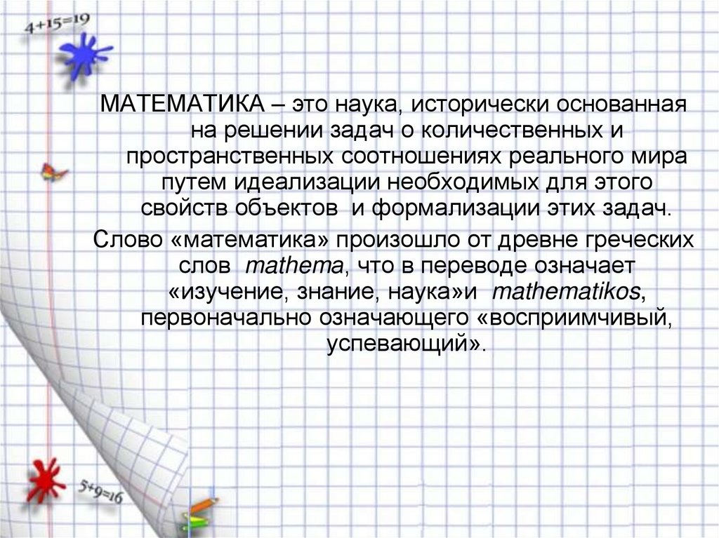 МАТЕМАТИКА – это наука, исторически основаннаяна решении задач о количественных и