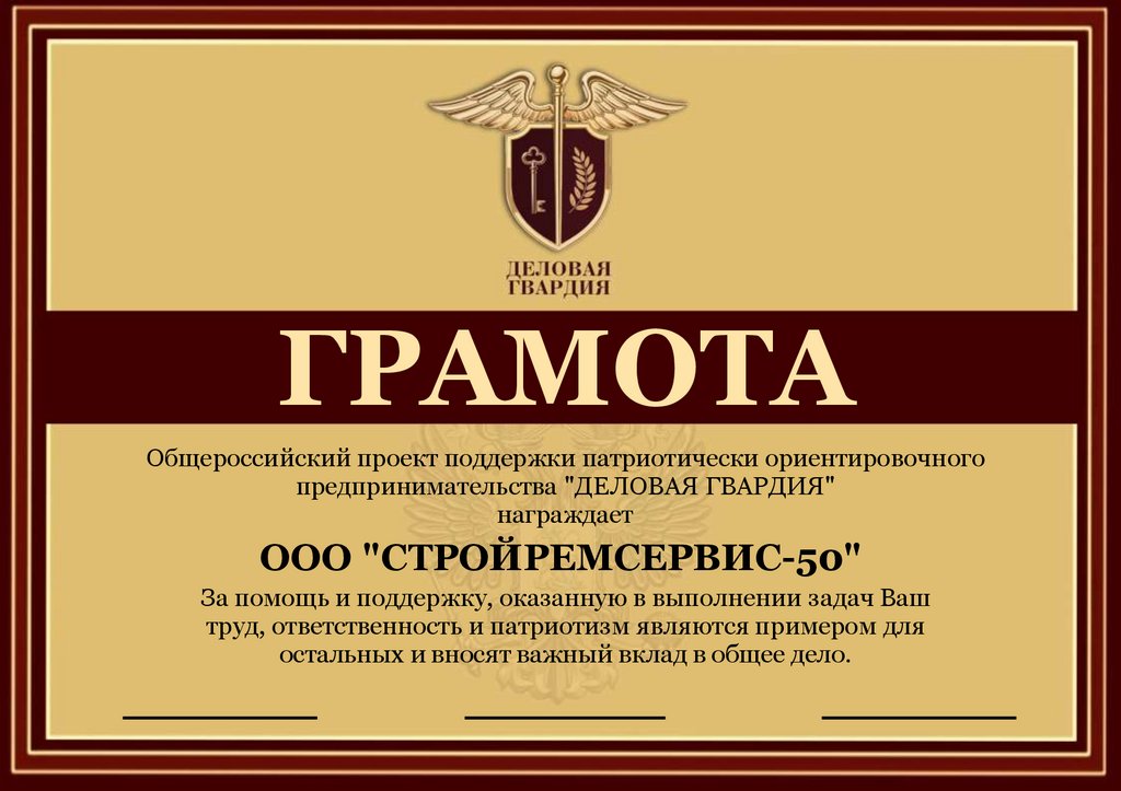 Грамота. Общероссийский проект поддержки патриотически ориентировочного предпринимательства "Деловая гвардия"