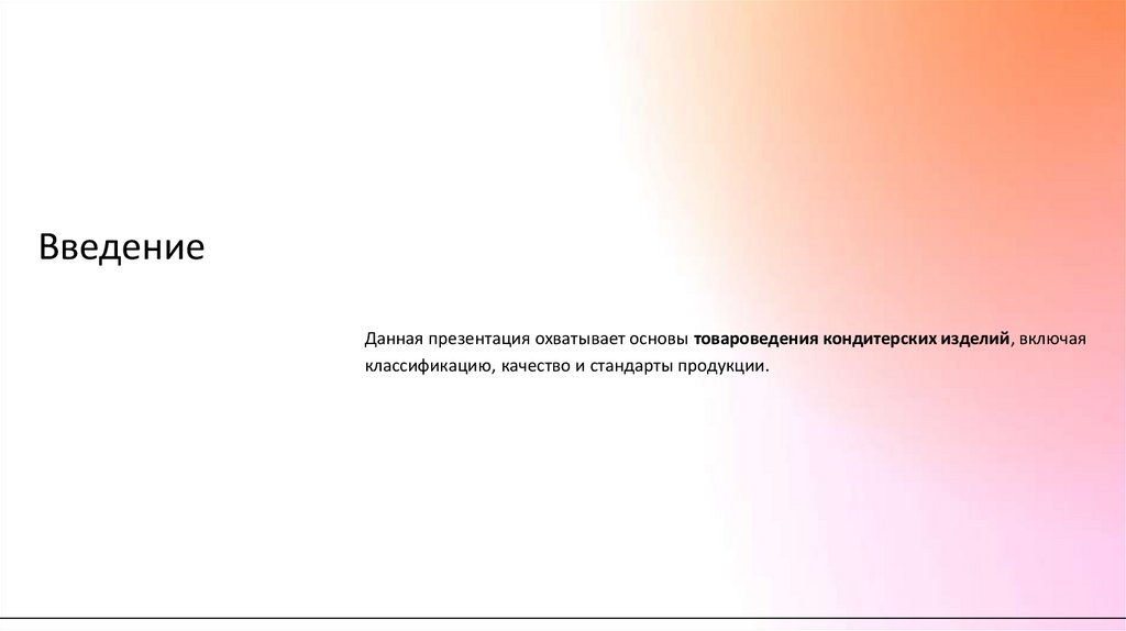 ВведениеДанная презентация охватывает основы товароведения кондитерских изделий, включая