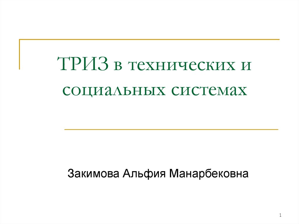 1. ТРИЗ в технических и социальных системах