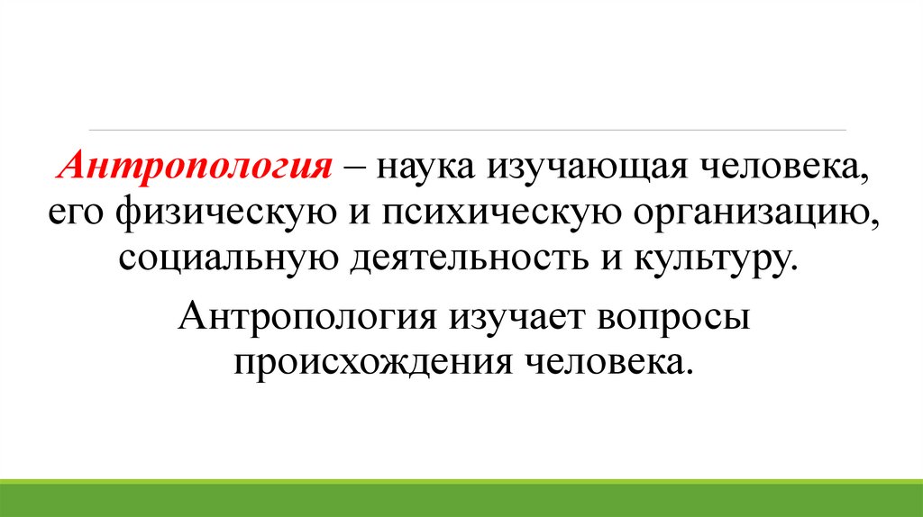 Антропология – наука изучающая человека,его физическую и психическую организацию,