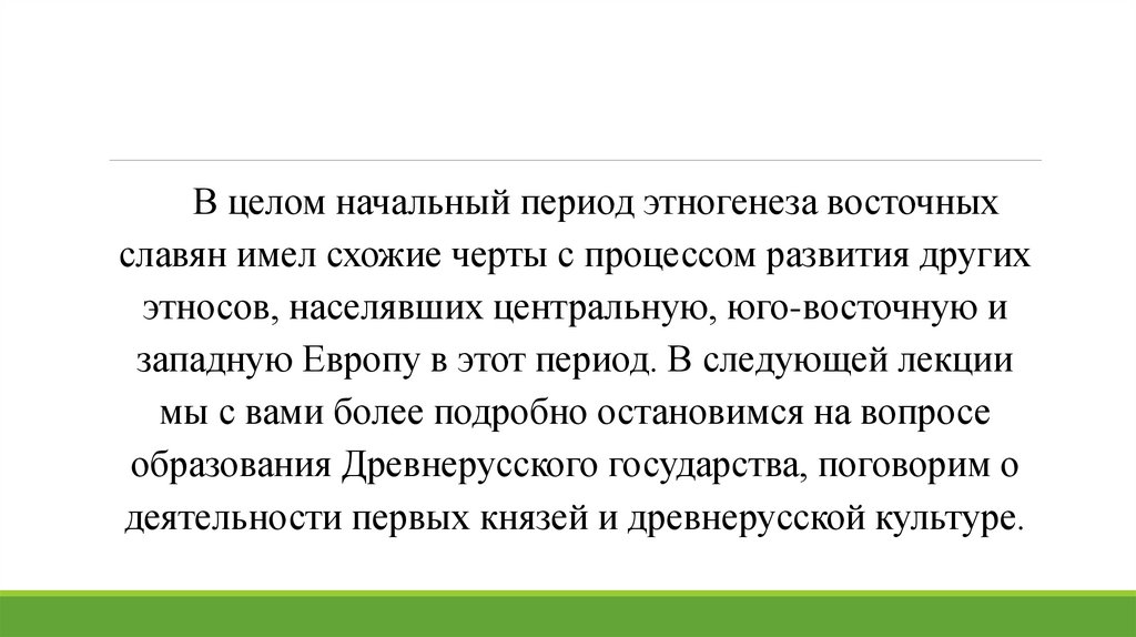 В целом начальный период этногенеза восточныхславян имел схожие черты с процессом развития других
