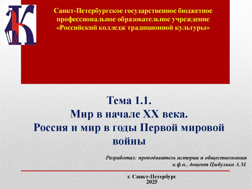 1. Тема 1.1. Мир в начале ХХ века. Россия и мир в годы Первой мировой войны