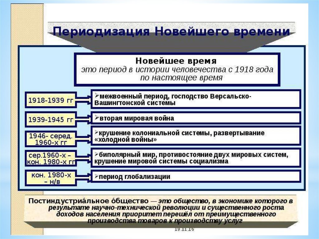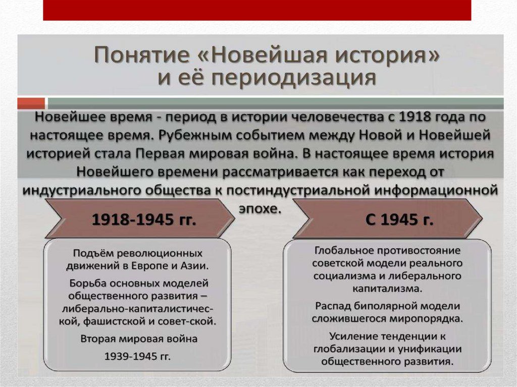* Период Новейшей истории от начала ХХ в. до рубежа ХХ—ХХI вв. Этот период можно разделить на следующие этапы: