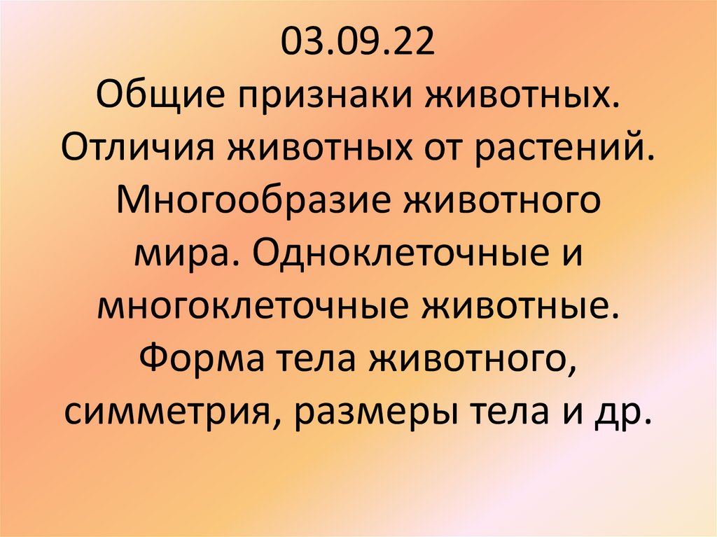 1. 03.09.22 Общие признаки животных. Отличия животных от растений. Многообразие животного мира. Одноклеточные и многоклеточные