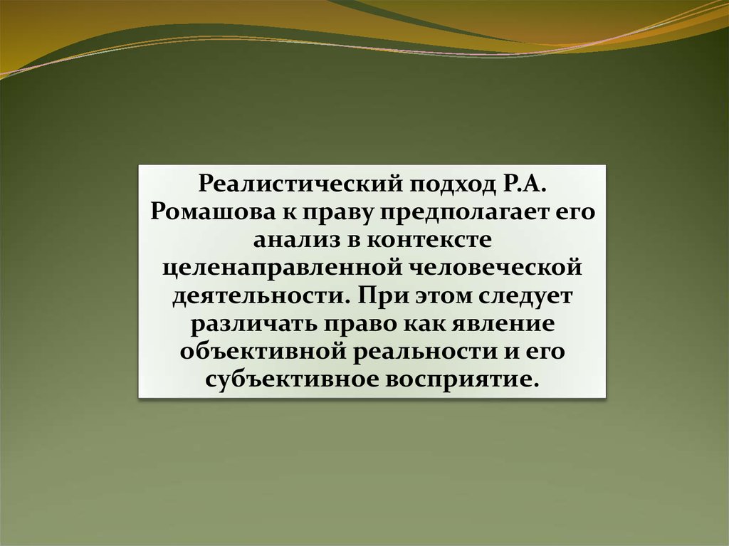 Реалистический подход Р.А.Ромашова к праву предполагает его