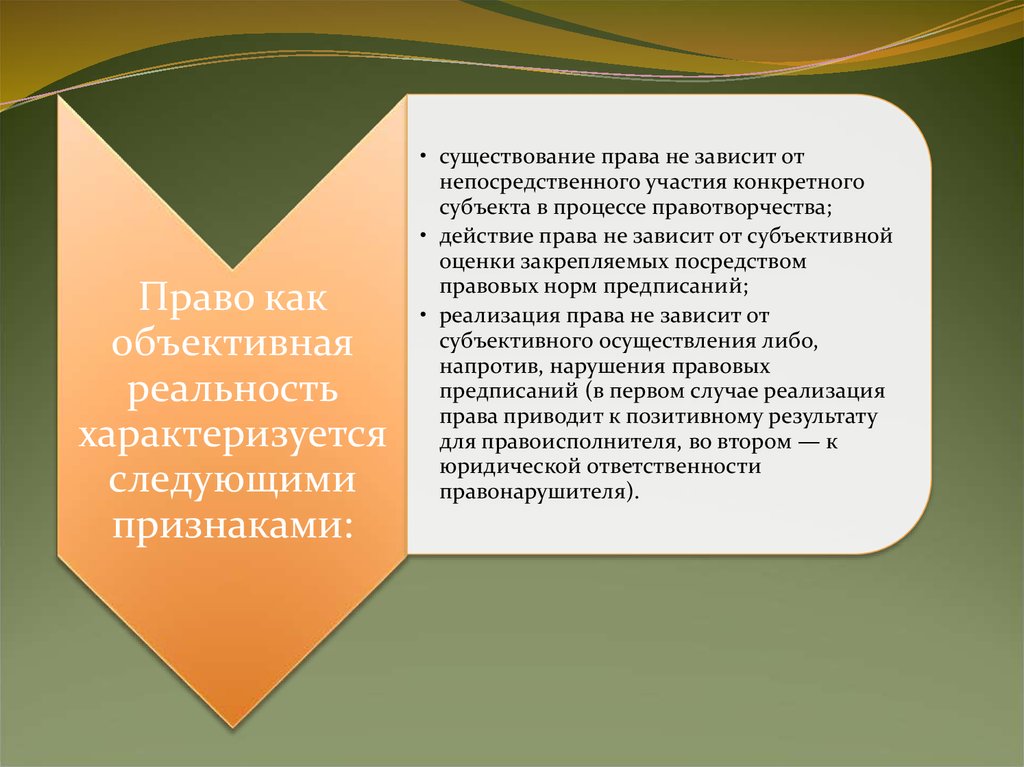 • действие права не зависит от субъективной