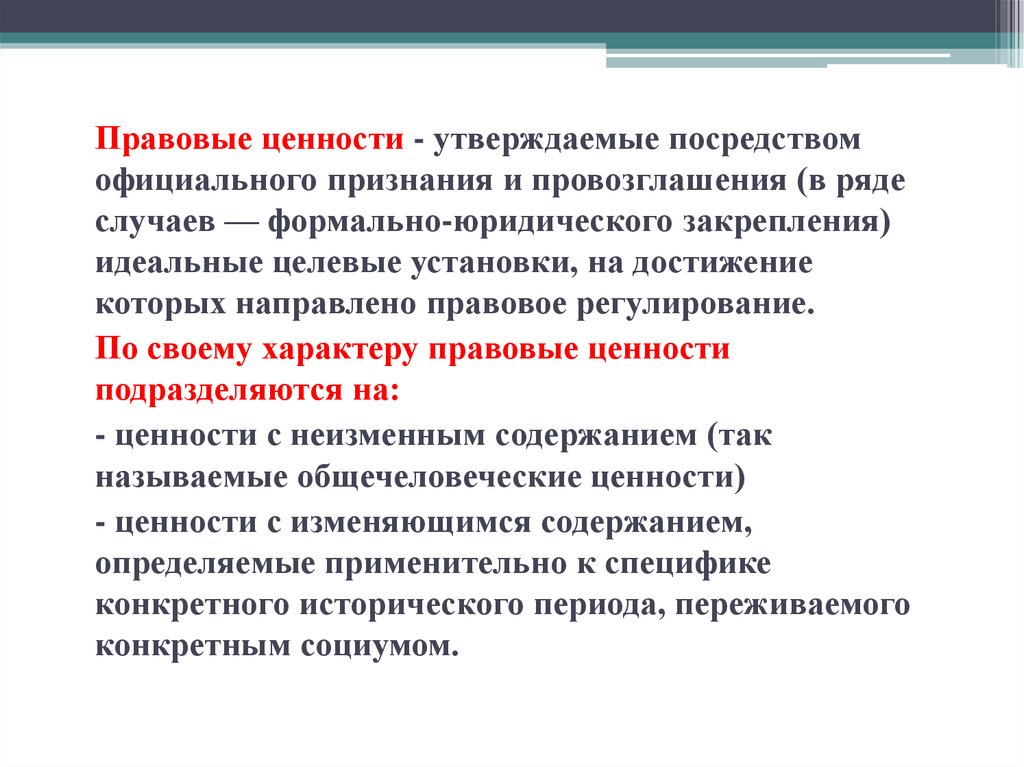 — правовые ценности;